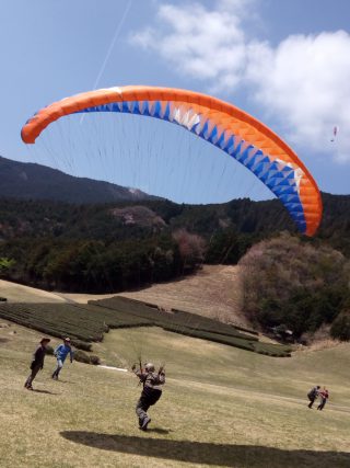 止まった瞬間に身体を持っていかれて、ずっこけます!こけました。楽しいよ、パラグライダー。